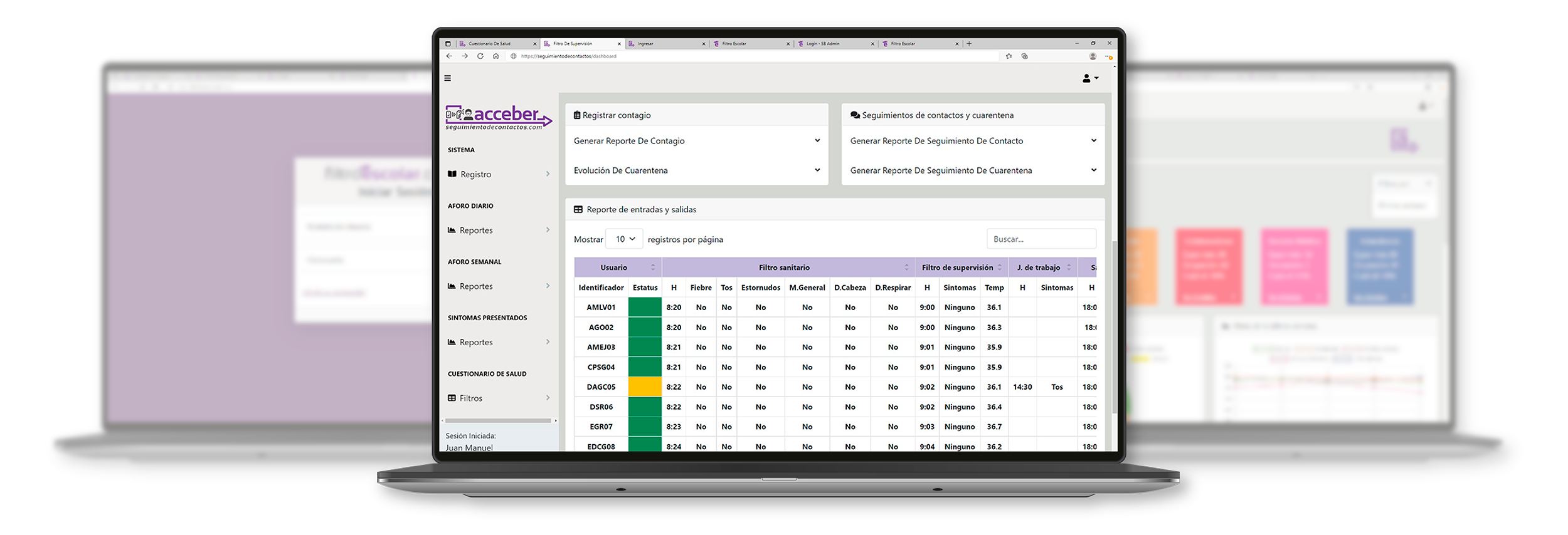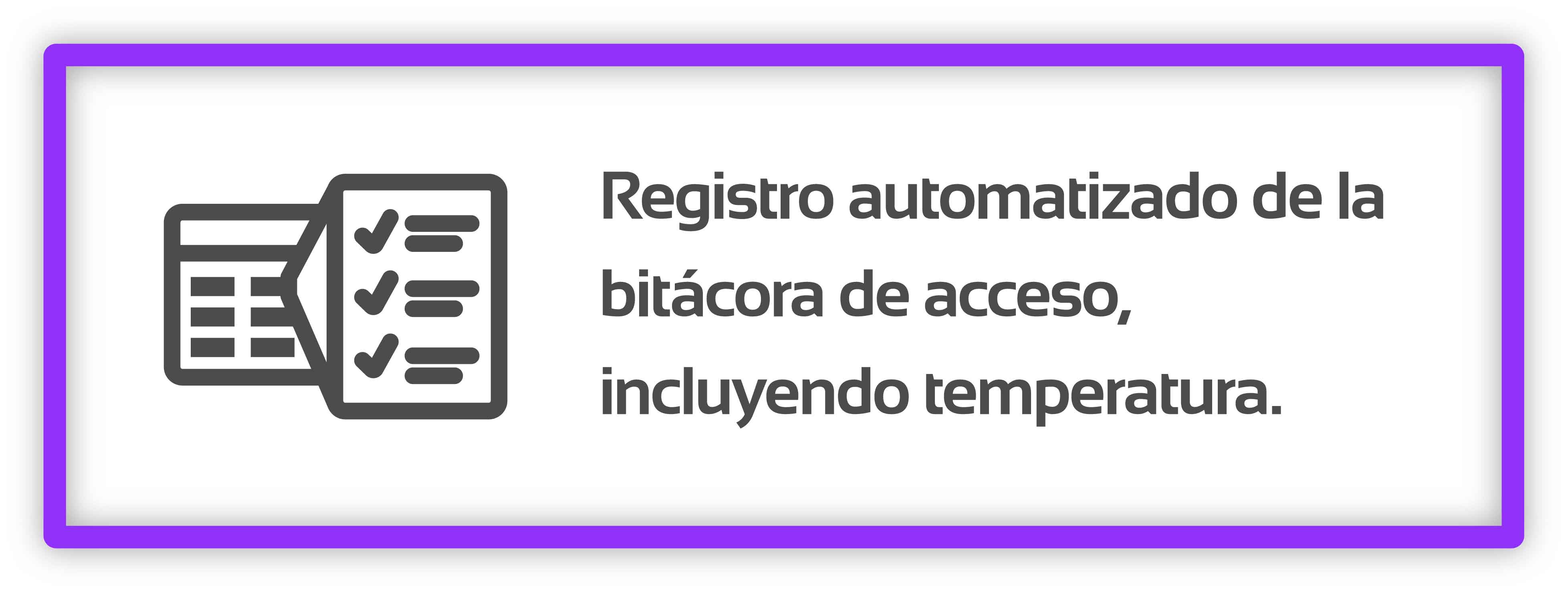 Es un sistema innovador que realiza el filtro de supervisión en tan solo unos segundos, optimizando recursos humanos, incrementando la seguridad en los inmuebles y ahorrando tiempo para el acceso de los empleados y visitantes. Evita el contacto cruzado entre el personal, automatiza el seguimiento de contactos en caso de contagios o cuarentena e identifica a todas las personas que ingresan a los inmuebles evitando intrusiones y riesgos.